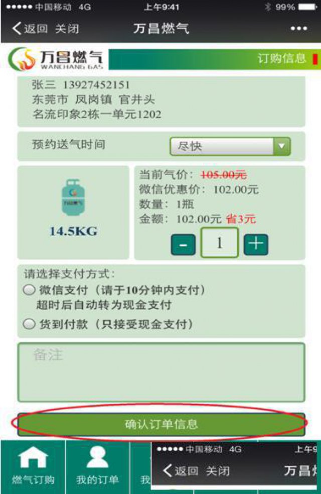 快捷:一键订气,自助下单