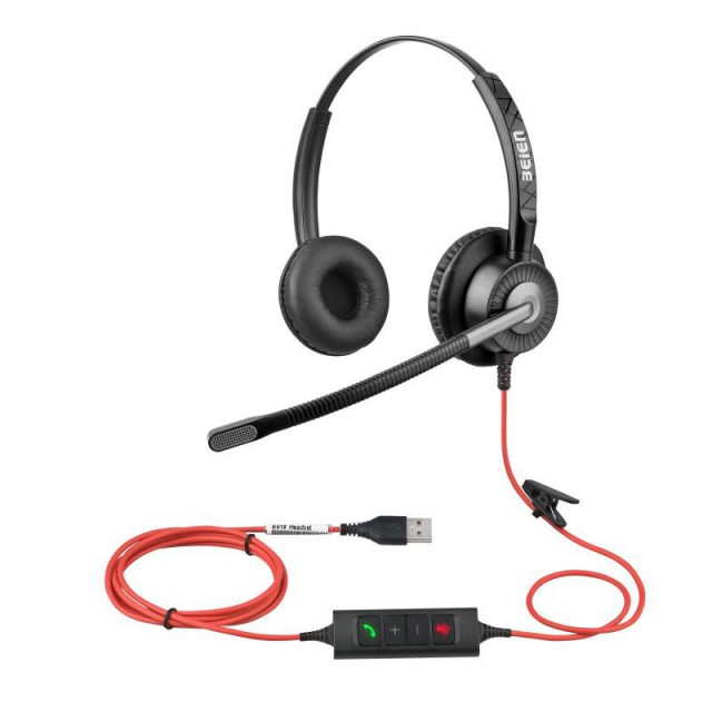 贝恩BS29USB双耳ENC降噪话务耳机头戴式耳麦,贝恩工厂OEM耳机源头定制批发跨境出口耳机。