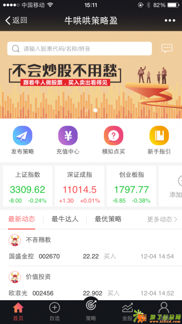 优势5:如果遇到不懂股票的客户也没关系,可以每天关注“最牛达人”和“最优策略”,查看牛人每天的交易和好的股票推荐,真正做到随时随地跟单。