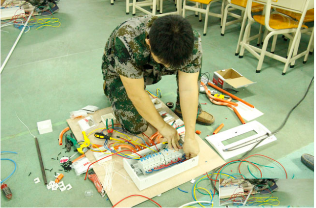 2、电路布设(绘制电路图。强弱电路实操、弹线、开槽、布线、布管,封闭管槽): 学时20天左右、学费2200元