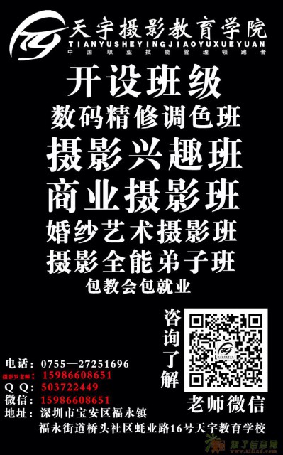 天宇摄影培训包教会包就业学不会不就业全额退款