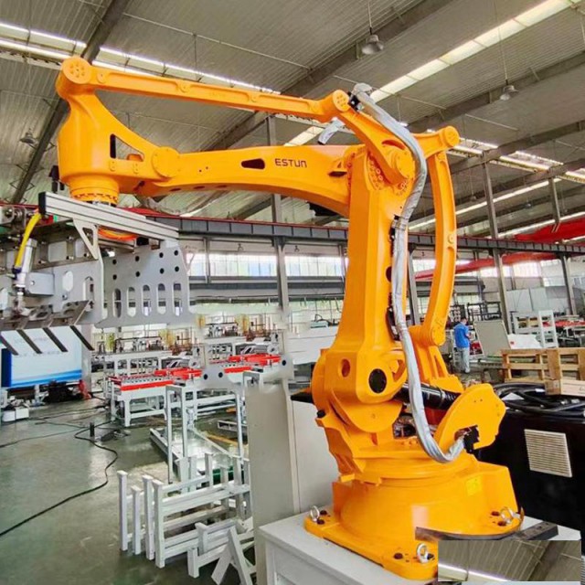 关节式机械臂:机器人采用关节式机械臂结构,具备多个旋转或直线运动的关节,能够灵活地在三维空间内移动和定位。这种设计使得机器人能够适应不同尺寸和形状的大米包装袋,确保堆叠的整齐划一。