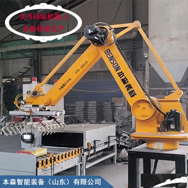 干粉砂浆本森关节码垛机器人是一款专为干粉砂浆等物料设计的自动化码垛设备,由本森智能装备(山东)有限公司生产。以下是对该机器人的详细介绍: