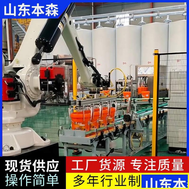 桶装润滑油码垛关节机械手是一种高度自动化的工业设备,通过多关节机械臂实现润滑油桶的精准抓取、搬运与码垛,显著提升生产效率并降低人力成本。