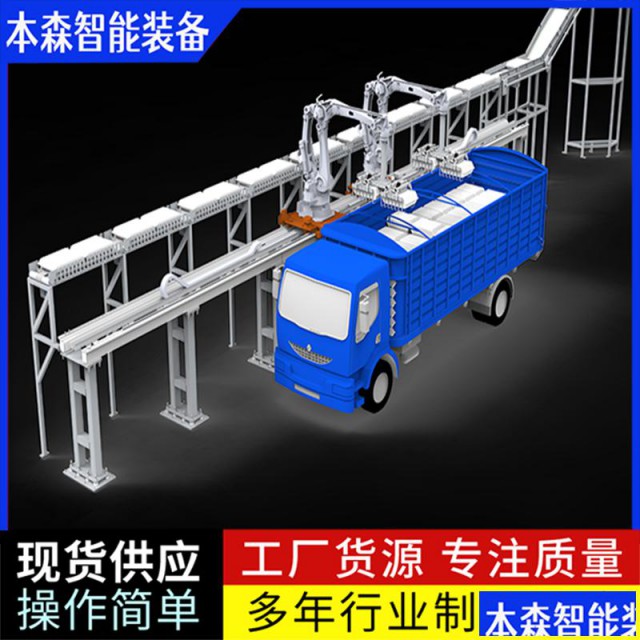 3.输送与装车:物料通过输送带或机器人臂部的移动,被转移到装车区域。机械臂根据预设程序或实时计算的最优路径,将物料放置到货车或集装箱内的指定位置。