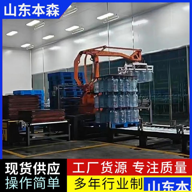 大桶水生产线全自动码垛机器人是现代水处理及包装行业实现自动化生产的关键设备之一,其通过集成机械、电子、控制及人工智能技术,能够高效、精准地完成大桶水(如5加仑、3加仑等规格)的码垛作业,显著提升生产效率并降低人力成本。以下从技术特点、应用优势及发展趋势三方面展开分析: