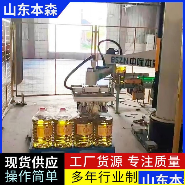 桶装食用油无人化立柱码垛机械手是一种高效、精准、灵活且安全的自动化设备,可显著提升桶装食用油码垛效率与质量,降低人工成本和劳动强度,适用于多种桶型及生产线场景,是食用油生产企业实现自动化、智能化升级的理想选择。 以下是对桶装食用油无人化立柱码垛机械手的详细介绍: