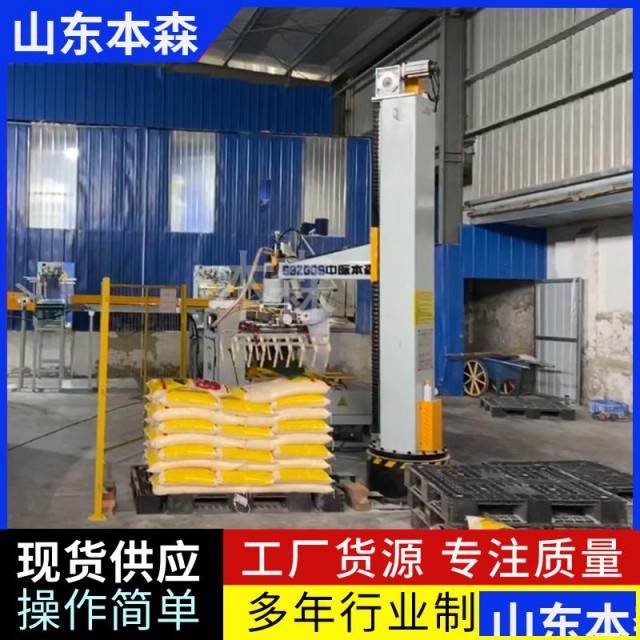 颗粒饲料输送立柱码垛机器人是一种专为自动化处理颗粒饲料及其他散装物料包装设计的工业机器人设备,具有高效精准、节省人力、灵活可调、安全可靠、结构紧凑及经济实用等优势,在饲料加工、农业综合企业等行业中发挥着关键作用。 以下是关于颗粒饲料输送立柱码垛机器人的详细介绍: