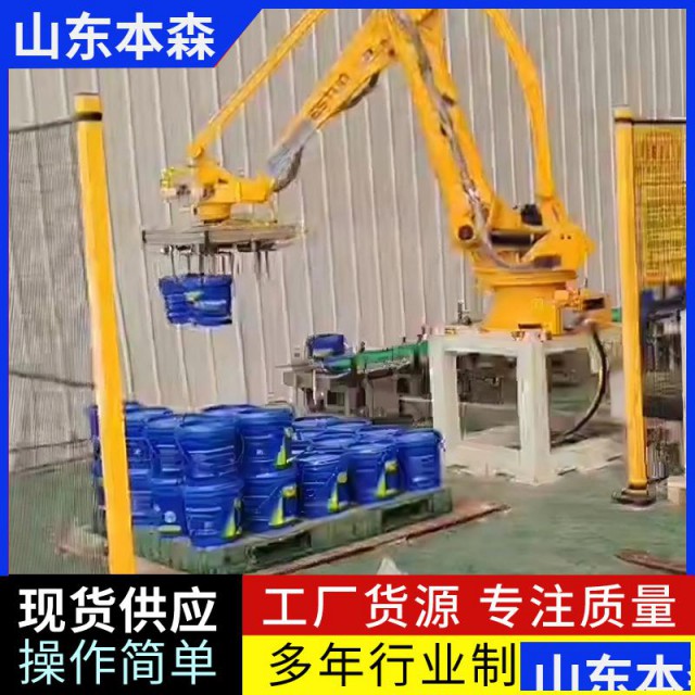 微生物肥料桶码垛全自动堆码机是一种专门用于微生物肥料桶自动化堆码的工业设备,它结合了机械传动、电气控制和智能算法,能够实现高效、精准、稳定的堆码作业。以下是对该设备的详细介绍: