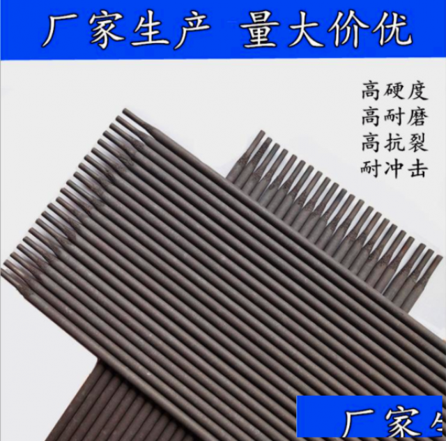 说明:该焊条是低氢钠型药皮的堆焊焊条,可交、直流两用,施焊时电弧稳定,飞溅小,易脱渣,成型平滑,堆积速度快,单层或多层堆焊均无脱落现象,焊缝金属韧性高,耐磨性好。
