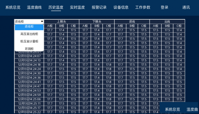 高压电气设备温度监测点都处于高电压、大电流、强磁场的环境中,甚至有的监测点还处在密闭的空间中,由于强电磁噪声和高压绝缘、空间的限制等问题,通常的温度测量方法无法解决这些问题而无法使用。我公司自主开发设计的无线式温度监测系统采用无线电波进行信号传输。传感器安装在高压设备上,与接收设备之间无电气连接,因此该系统从根本上解决了高乐设备接点运行温度不易实时在线监测的难题。无线式温度监测系统具有极高的可靠性和安全性,且价格相对低廉,可直接安装到每台高压开关、母线接头、户外刀闻或变压器上。系统配备标准通讯接口,可联网运行。通过上位机软件,可记录高压设备实时运行温度的数据。为高压设备的维修提供累积数据,实现了高压设备热故障预知维修。 技术参数:
