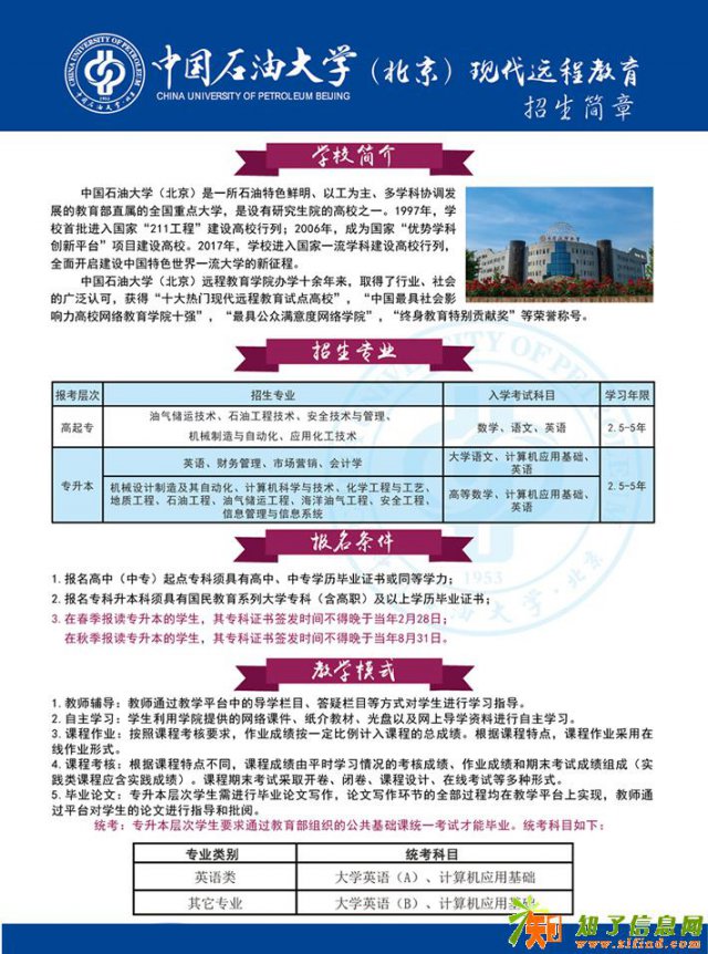 本科:英语,财务管理,市场营销,会计学,机械设计制造及其自动化,计算机科学与技术,化学工程与工艺,地质工程,石油工程,油气储运工程,海洋油气工程,安全工程,信息管理与信息系统