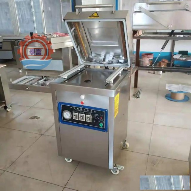 大型食品真空包装机多少钱一台诸城泰富机械生产的食品真空包装机规格齐全,价格实惠,该食品真空包装机是利用一个真空盖在两个真空室上相互交替工作,提高了工作效率,节约了劳动成本,此款食品真空包装机适用于大规模生产型企业的水产、肉类、果蔬、酱菜等食品、药品、电子产品、化工产品的真空包装