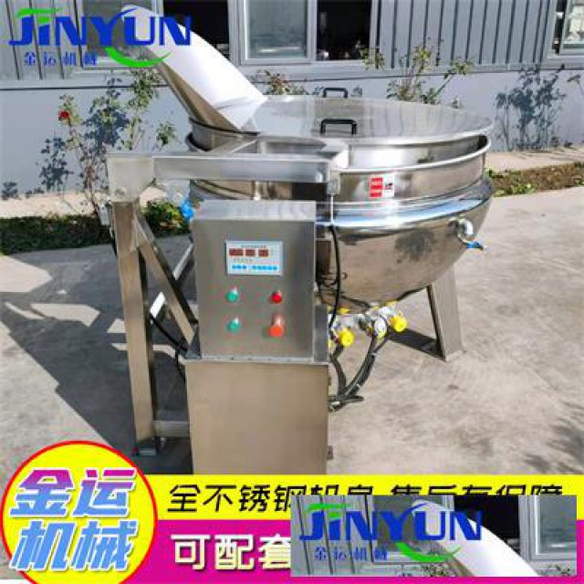 搅拌、刮底搅拌夹层锅。食堂熬粥、炒菜锅。夹层锅可用于食品加工,卤肉、入味、熬制、