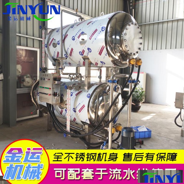 自动调节压力温度,产品变形小,用热水在杀菌过程后回收上罐,减少热量散失,节约能源,热水循环利用,节约水资源,且不生垢