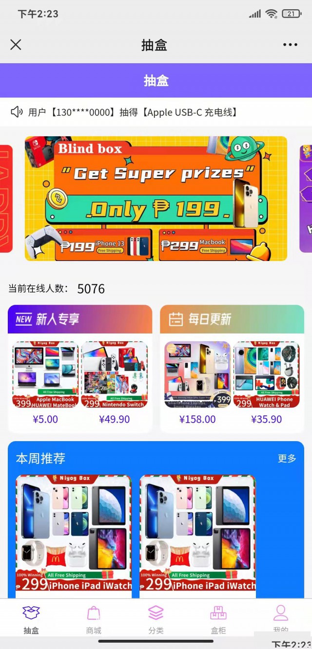 2.线上盲盒没有产品类别限制,可以设置任意奖项,客户群体更为广泛,对于消费者的吸引力更大;