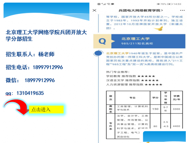 一、北京理工大学(兵团开放大学分部)网络学院专科本科招生