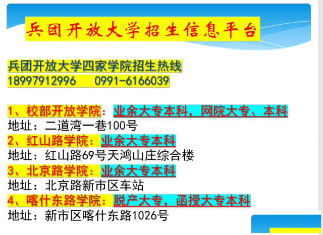 (一)兵团开放大学成人教育业余大专函授