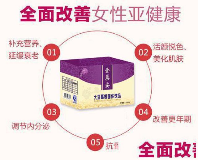 1:全面补充卵巢营养 大豆异黄酮平衡雌激素分泌、抗氧化、清除自由基、排除下阴淤积毒素,使卵巢健康无炎症