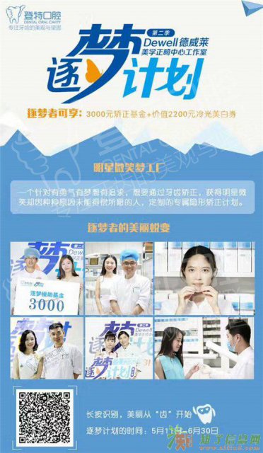 报名参加活动,成为逐梦者,即可享受3000元的牙齿矫正基金减免和价值2200元的冷光美白券。