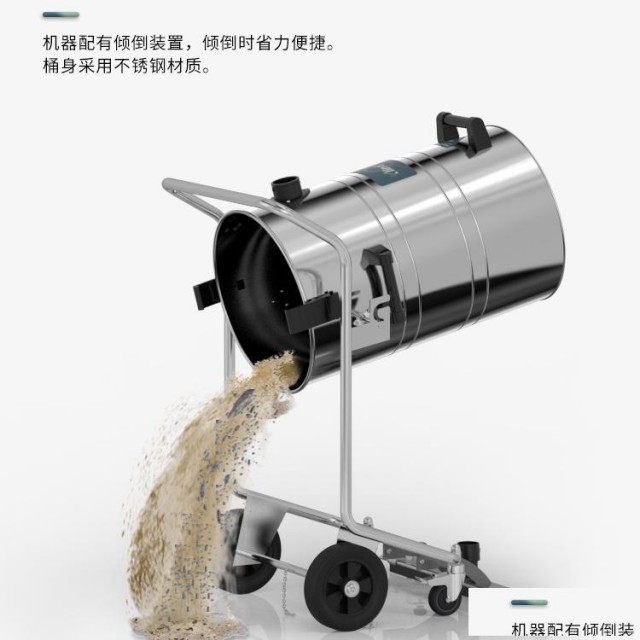 GS-3078P是一款工业型的产品,集尘桶为80L,为不锈钢材质,配有不锈钢车架,在移动时轻巧方便;机器除常规手持式吸尘外,还装置有60cm左右宽的推吸扒头,可以边推边吸,减少了人力物力;可以用在工厂、仓库或建筑工地等场所清理灰尘等,在商业环境中也可以使用。