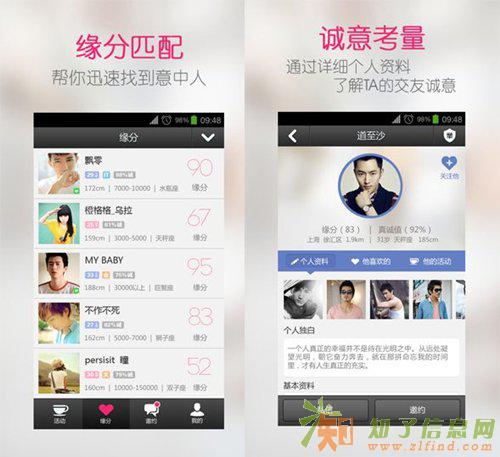 7、缘分速配:根据地区、年龄、爱好等资料进行推荐符合自己的用户。