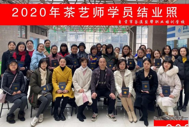 自贡市釜溪盐帮培训学校2020年茶艺师培训班学员在今天画上了一个圆满的句号。感谢所有老师的辛勤付出,感谢学员们对自贡釜溪盐帮学校的信任,也感谢70度茶艺工作室陈蕾老师的大力支持。愿我们的学员们:饮一杯茶,一切从心开始!