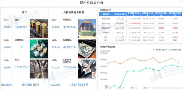 奥威BI For用友金蝶标准解决方案报表效果图: