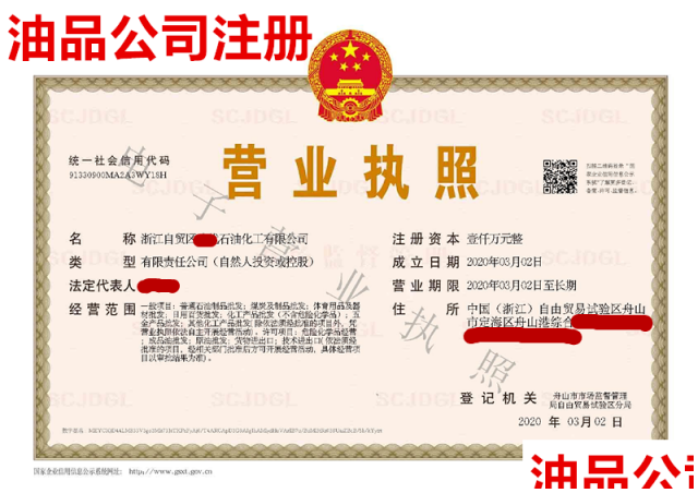公司名称、注册资金、股权分配比例、经营范围、法人股东信息、经营地址(油品企业地址我司免费提供)