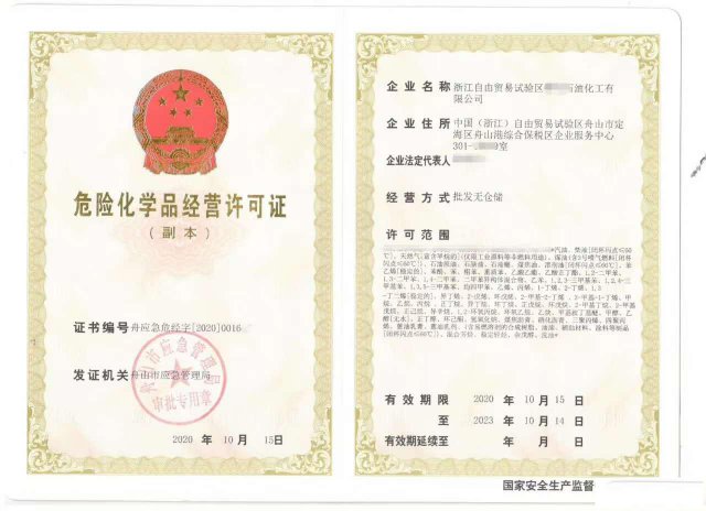 浙江舟山全国地区注册油品类公司、XX石油化工公司、XX石化公司、XX能源公司、危险化学品经营许可证、油品经营营业执照、易制毒许可证、提供国家保税区注册地址(享受国家保税区高额返税政策扶持),全国可经营、办理速度快,20工作日办完。