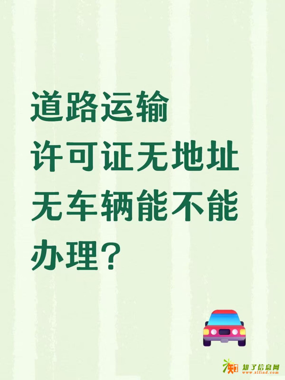 可以,在广州市部分地区,想要办理道路运输经营许可证还是比较简单的,像花都办理即使无地址无车辆都ok,提供执照,公章,5名人员身份证和电话,B牌驾驶证和从业资格证就OK了。资料齐全的,1个月左右就可以下证。