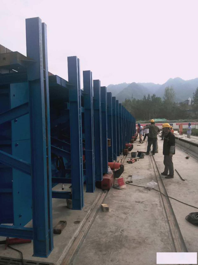 另一套需特制,即将一块8米长侧模分成两块4米长,并且将侧模在断面方向分为三块,并配有特制桁架。这套特制模版在满足打31.5米和23.5米高粱的同时,在重新调整安装后可满足打23.5米低梁和19.5米低梁。