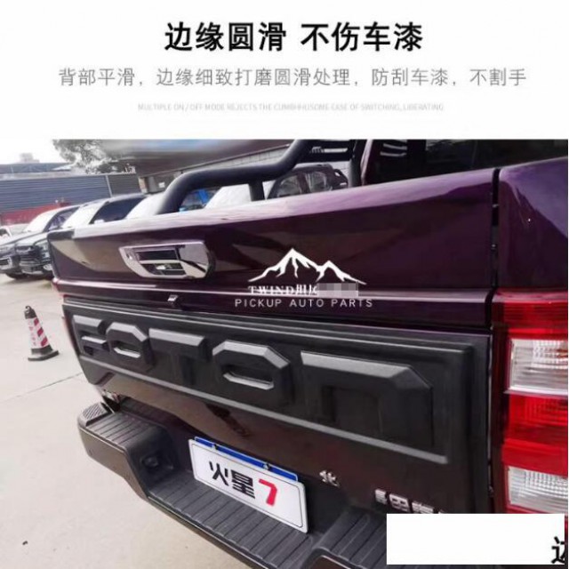 福田火星7/9皮卡车尾门装饰板子改装件,原车开模,贴合车身。优质ABS材质制成,耐磨耐刮,背面有汽车专用背胶,安装稳固不脱落。背部平滑,边缘细致打磨圆滑处理,防刮车漆,不割手。
