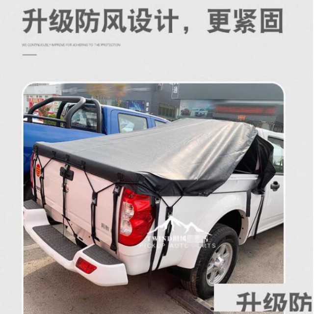 福田火星9火星7大将军驭途皮卡车后箱蓬布雨蓬布,款式升级,增加卡扣垫布,防止磨损车漆。升级防风设计,带有防雨拉链,接缝处刷胶防漏处理。选用优质金属拉扣,结实更耐用。卷合随意,方便收纳。防雨防晒,非常实用。