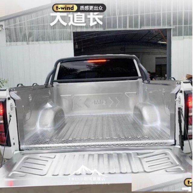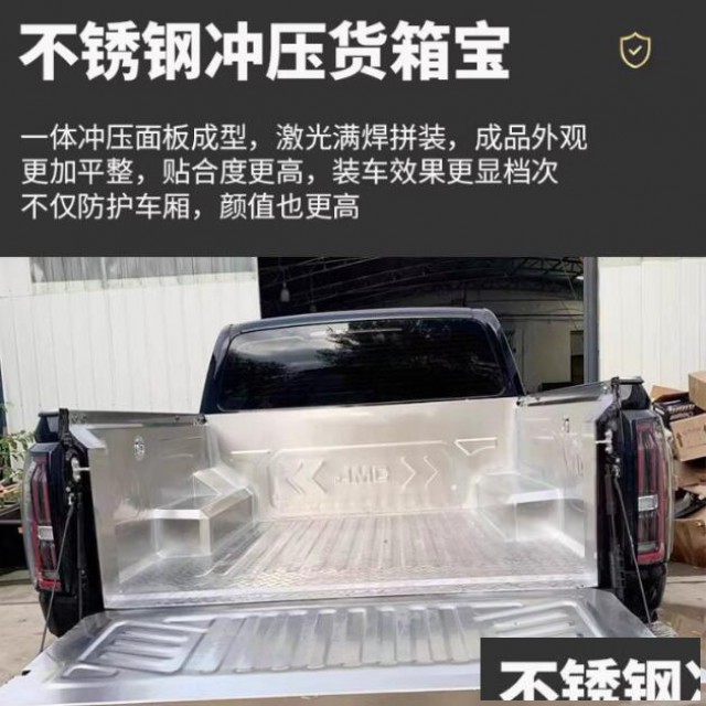 江铃大道皮卡不锈钢货箱宝后箱宝货箱垫子改装件,一体冲压面板成型,激光满焊拼装,美观又防水。成品外观平整,贴合度高。自带绑绳,方便实用。保护原车斗。