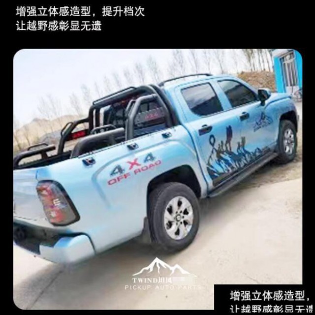 GMC公羊坦途f150长城炮皮卡车龙门架防滚架护栏架,优质碳钢,经久耐用。采用激光满焊,静电喷粉工艺,结实耐用。带高位刹车灯,提高行车安全。贴合原车设计,增强立体感造型,提升档次。