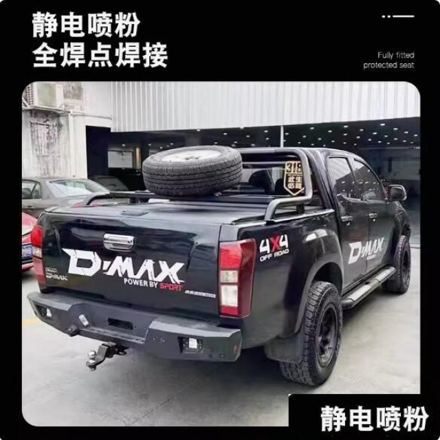 21款五十铃dmax瑞迈皮卡车龙门架护栏架子改装件,带备胎架款。镀锌铁管材质,经久耐用。采用全焊点焊接,静电喷粉工艺制成,原车开模,贴合车身。打孔安装,宽度可调节。