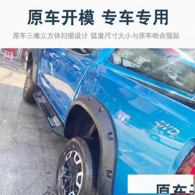 中兴威狮皮卡车黑色防撞轮眉防护件,优质ABS材质,防刮耐磨,防擦挡泥,美观实用。原车开模,专车专用,带背胶,粘贴式安装,内页子打孔,安装便捷。自带黑胶条包边,不伤车漆,不割手,防护更安全。