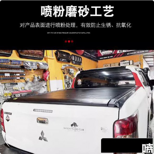 三菱皮卡l200皮卡车手动卷帘推拉盖子改装件,加厚铝合金材质,重量轻,耐磨耐腐蚀,承重力强。升级款滑轨,宽边覆盖设计,安装稳固不移动。带锁防盗,内置LED灯设计。