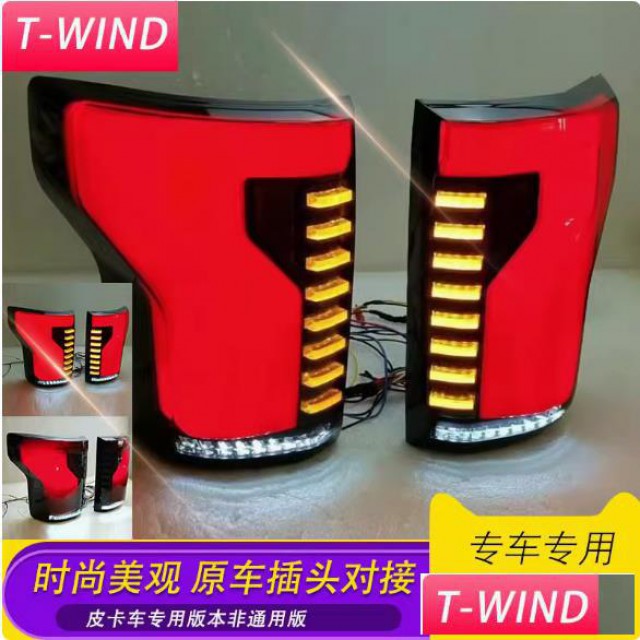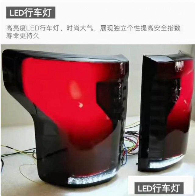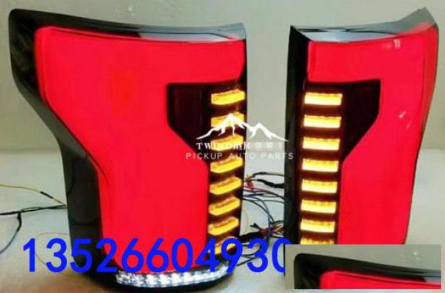 福特F150猛禽皮卡车流水尾灯改装件,全系皮卡通用件。LED灯珠,高亮度光源,立体感强,白天晚上同样出彩。LED刹车灯,刹车时更高亮,清晰醒目,预防追尾,提高行车全天安全性。流光转向灯,高亮时尚无延迟,使车辆在道路上行驶清晰醒目,提前得到警告,以提高安全距离。