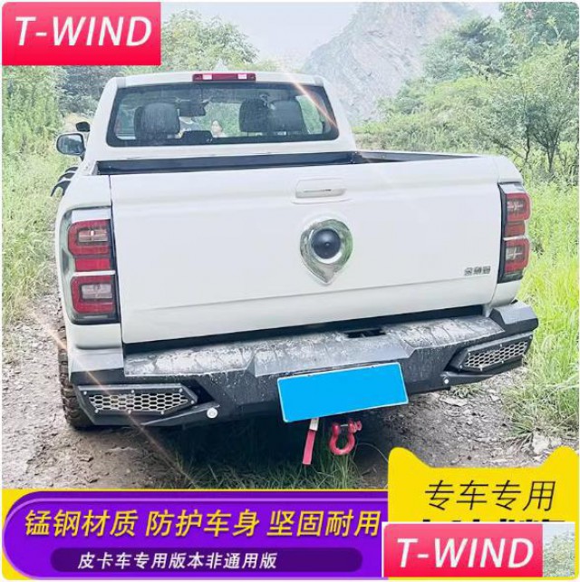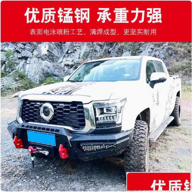 长城金刚炮皮卡车前后刀锋保险杠护杠改装,优质锰钢材质,表面电泳喷粉工艺,满焊成型,坚实耐用。承重力强,安装后增强车身立体感,提升档次。安装免打孔,无损安装。