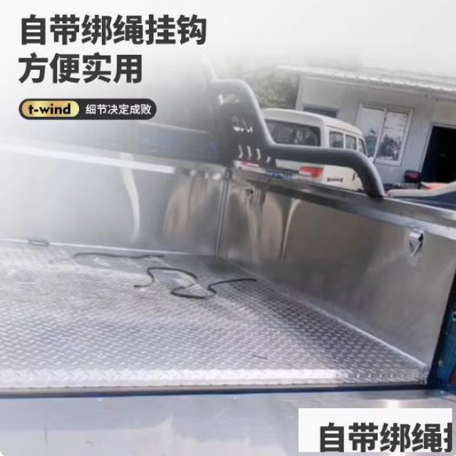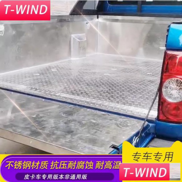 江淮帅铃t6/t8皮卡车货箱宝后箱垫子改装件,全金属不锈钢,冷钢板,镀锌板材质可选。采用原车开模设计,贴合度高。满焊工艺,美观又防水。具有抗压耐腐蚀,不易生锈等特点,可有效保护原车漆面。自带绑绳挂钩,便于固定,方便实用。