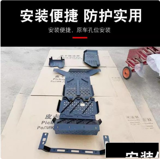 23款游骑侠ranger小猛禽皮卡车底盘装甲发动机下护板配件,加厚3mm碳钢材质,有加强筋,稳固贴合车身底盘,3D立体版型设计。预留散热通风孔,前后负压式通风导热孔,科学三丰散热。原车孔位安装,结实耐用。