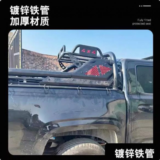 江铃大道皮卡车龙门架防护栏架防滚架改装件,带筐设计,镀锌铁管,加厚材质。采用激光满焊,静电喷粉工艺,防腐蚀性强,经久耐用。原车数据开模,贴合车身。增强立体感造型,提升档次。安装打孔。