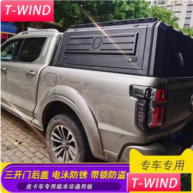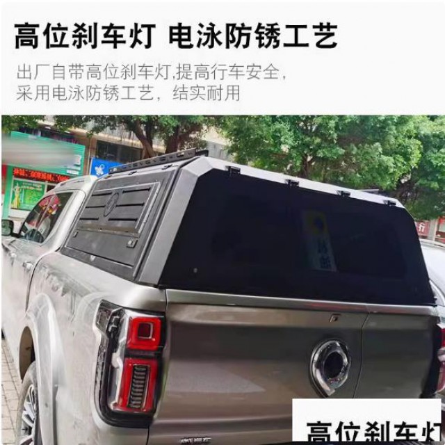 长城山海炮皮卡车旅居版锰钢三开门后箱货箱尾箱盖子,全金属材质,结实耐用。整体打磨,电泳防锈。带有高位刹车灯,提高行车安全。液压升降窗盖,开合方便,带锁设计,有效防盗。卡扣安装,免打孔。