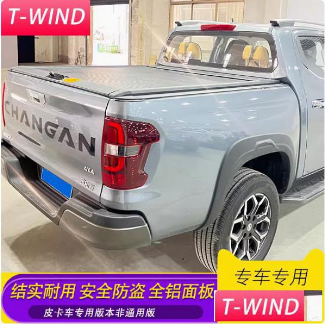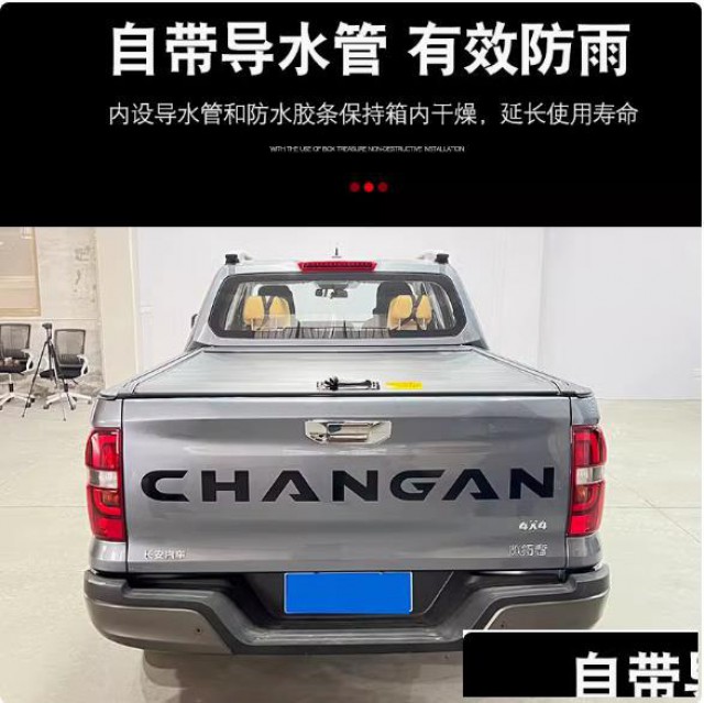 长安览拓者皮卡车卷帘拉帘后箱尾箱盖平盖改装件,手动、电动两种可选。铝合金材质制成,贴合原车设计,牢固稳定。耐磨损耐腐蚀,承重力强。内设导水管和防水胶条保持箱内干燥,延长使用寿命。带锁防盗,安全放心。拉绳辅助,开合方便。