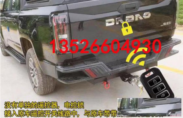 江铃大道皮卡车后箱盖尾门电控锁改装件,纯铜延长线,进口机芯,反应迅速。隐秘走线,不影响美观。利用原车孔位安装,免打孔。没有单独的遥控器,电控锁接入原车遥控开关线路中,与原车带的遥控钥匙联结。