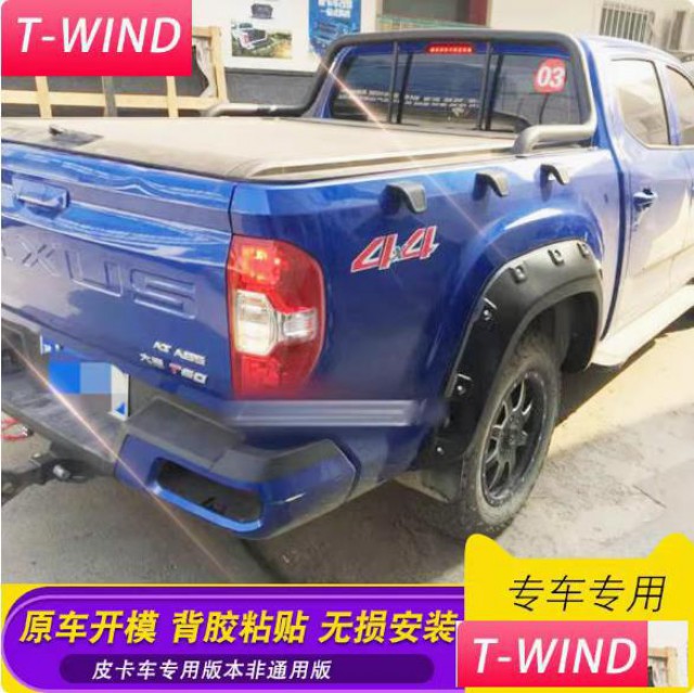 大通t60皮卡车身黑色带钉轮眉改装件,ABS材质制成,原车开模,专车专用。防刮耐磨,美观实用。自带胶条包边,不伤车漆,不割手,防护更安全。粘贴式无损安装,带背胶,方便快捷。