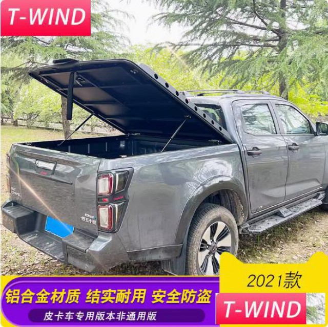 21-23款五十铃dmax瑞迈铃拓皮卡车液压杆后箱平盖改装件,铝合金材质,坚固耐用。承重能力强,带有撑杆支撑,开合方便省力。尾部带锁,安全放心。打孔安装,方便快捷。