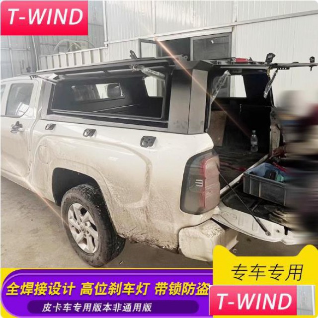 长城金刚炮皮卡车后箱盖货箱高盖改装件,三开门(两侧窗,尾门可打开)设计,全金属材质,电泳防锈处理,易于钣金修复。侧窗,尾门均带锁设计,均带有液压撑杆,便于开启闭合。安装免打孔。